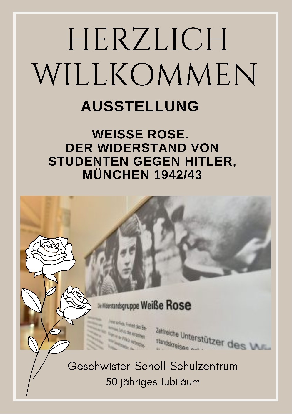 Im Rahmen des Jubiläumsjahres wird in der Zeit vom 29.01. bis 20.02.2026 diese Ausstellung in der Mediothek des Schulzentrums gezeigt und für alle Klassen und Kurse von Geschwister-Scholl-Gymnasium und -Realschule zugänglich gemacht.