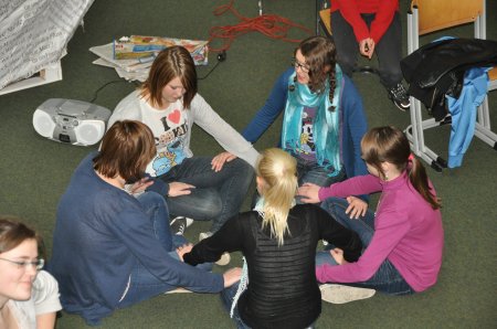 »Wer ist heute dran mit vorlesen?« – Die Liste der Schüler, die am Ende jeder Sitzung in großer Runde vorlesen wollen, ist lang. Die Erfahrung, dass die eigenen Texte von den Mitschülern und Studierenden wertgeschätzt werden, wirkt höchst motivierend auf die jungen Schreiber. Sehr aufmerksam hörten die Schüler bei der Lesung der Kinder- und Jugendbuchautorin Marjalena Lembcke zu, die im Mai 2010 als Gast in der Schreibwerkstatt aus ihren Geschichten vorlas.